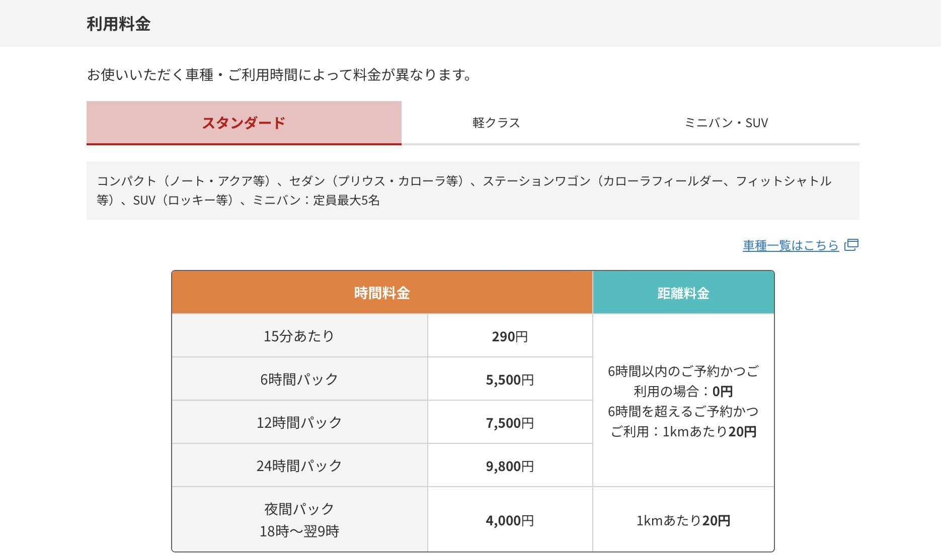 旅行で1〜2日程度利用する際もガソリン代が発生しない分、レンタカーより安く利用できることが多いです。(時期やどこで利用するか次第な部分もあります。)