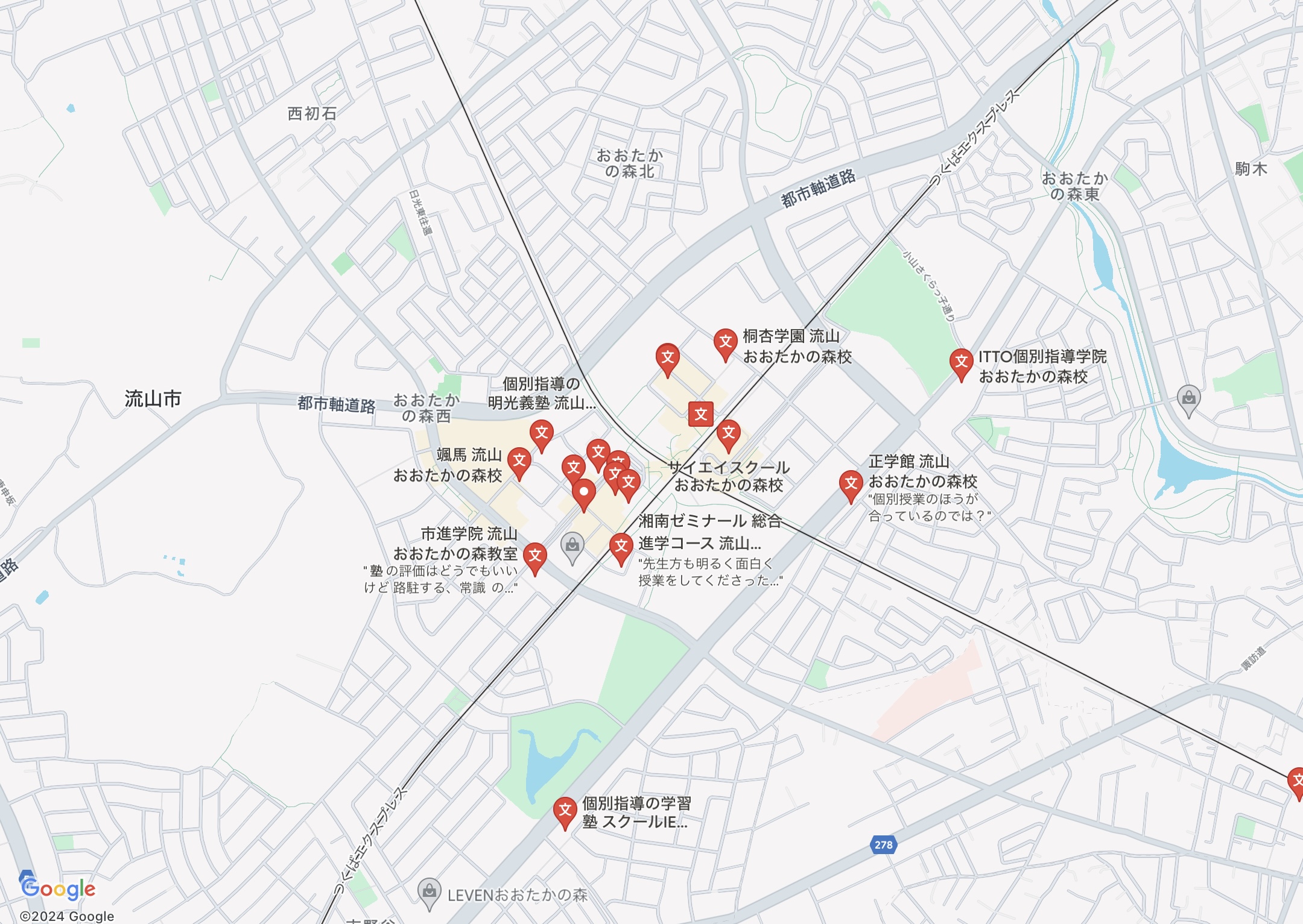 なお、以下画像はgoogle mapで塾で検索して出てきただけなので、実際にはあっても画像に載っていない塾もあります。